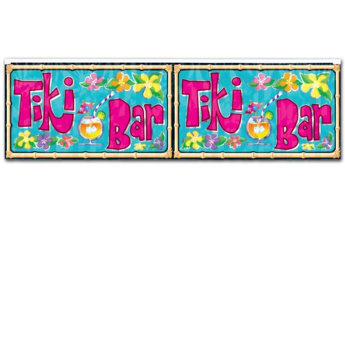 Flame Resistant Metallic Tiki Bar Fringe Banner. Printed 1-ply PVC. Size: 14'''' x 4'. 1 per package. Made in USA.'' Case Pack 84 Please note: If there is a color/size/type option, the option closest to the image will be shipped (Or you may receive a random color/size/type).